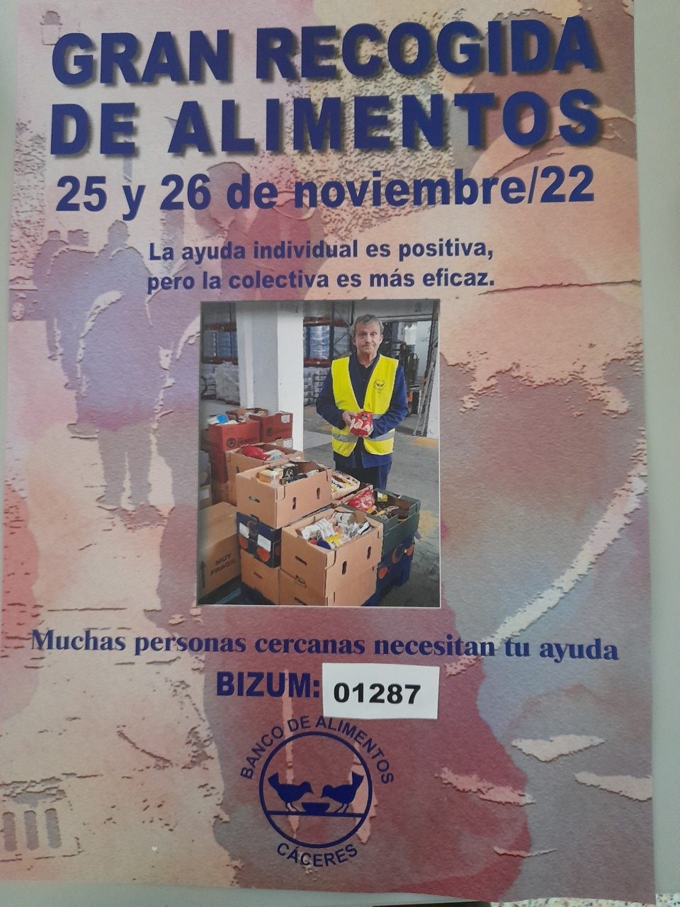 Y si quieres realizar una donación económica, lo puedes hacer en el periodo comprendido entre 25 de noviembre al 3 de diciembre, o en cualquier momento del año, entrando en nuestra página web https: bancoalimentoscaceres.org, en nuestro Facebook, donde encontrarás toda la información disponible donde puedas ayudar. Así como a través de BIZUM 01287.